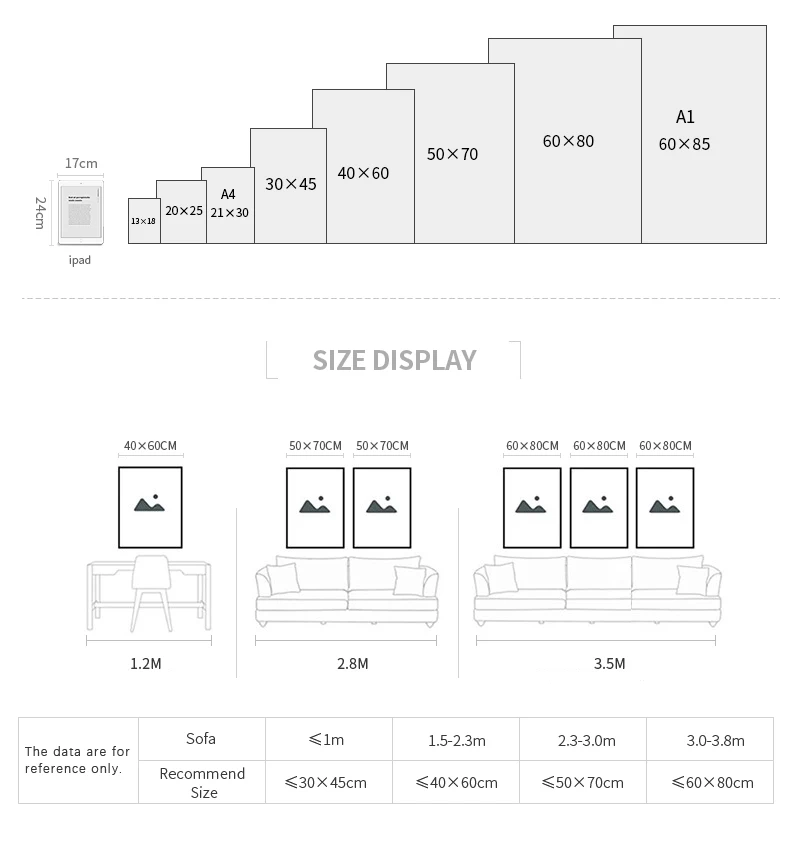 | Size (Inch) | 21x30cm A4(No frame), 20x25cm (No frame), 30x45cm (No frame), 40x60cm (No frame), 50x70cm (No frame), 60x80cm (No frame), 60x85cm A1(No frame), 13x18cm (No frame) |