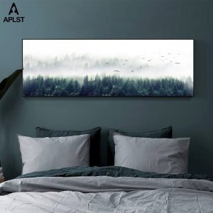 Be the first to review “Nordic Mountain Foggy Forest Nature Print Poster Scandinavian Tree Birds Canvas Painting Decorative Picture Wall Art for Bedroom”