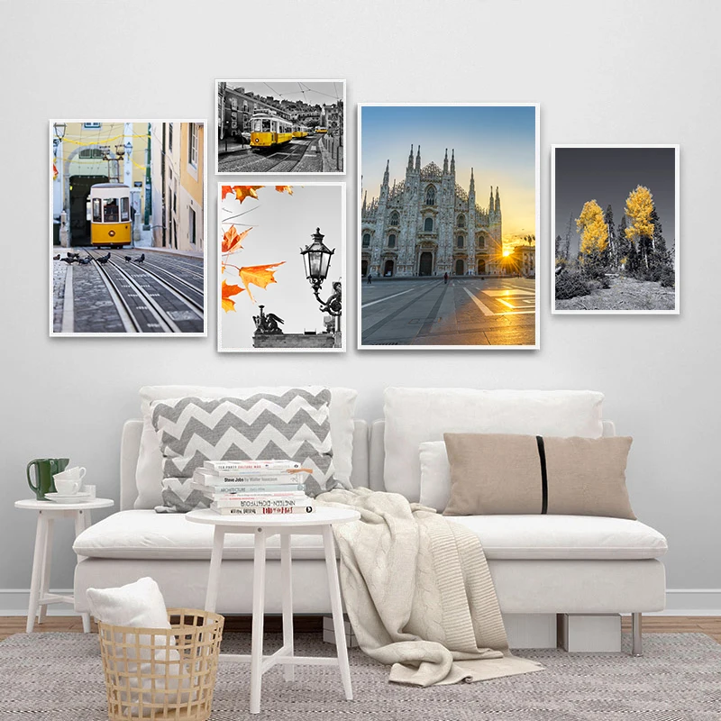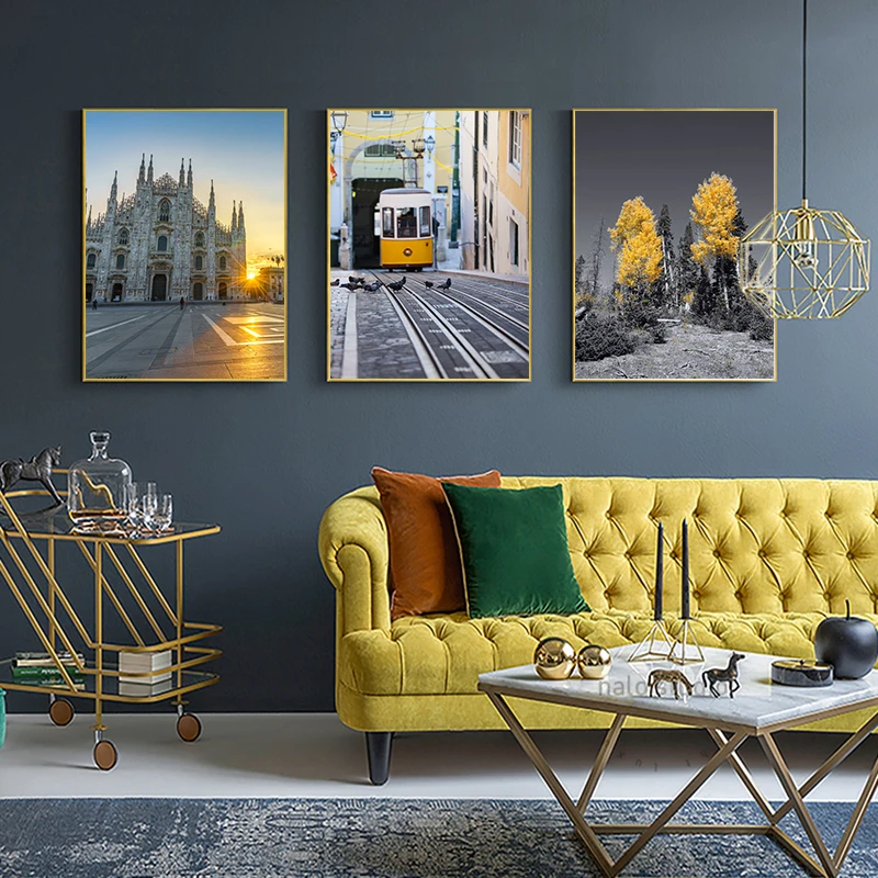 Be the first to review “Nordic Natural Landscape Canvas Poster Black Yellow Bus Church picture Wall Art Print Painting Wall Pictures for Living room”