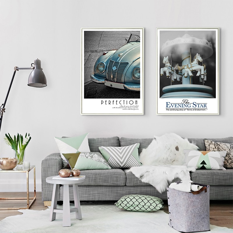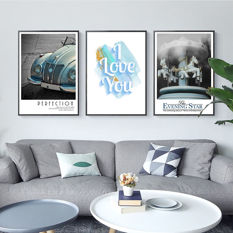 Be the first to review “Nordic Nostalgic Blue Car Canvas Painting Love Quotes Wall Art Poster Carousel Print Wall Picture for Living Room Home Decor”