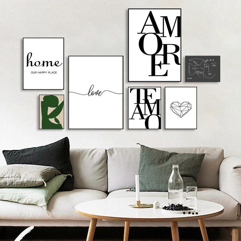 Nordic Quote Words Poster Black and White Canvas Painting Love Amore Minimalism Wall Art Pictures for Living Room Home Decor
