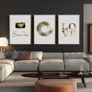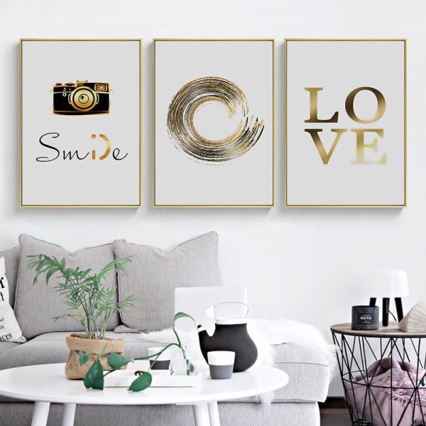 Be the first to review “Nordic Style Golden Camera Wall Art Canvas Painting Love Quote Poster Print Modern Minimalist Picture for Living Room Home Decor”