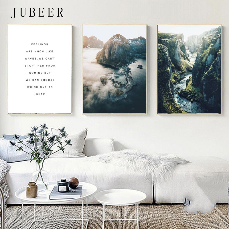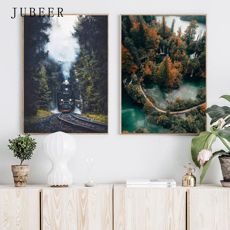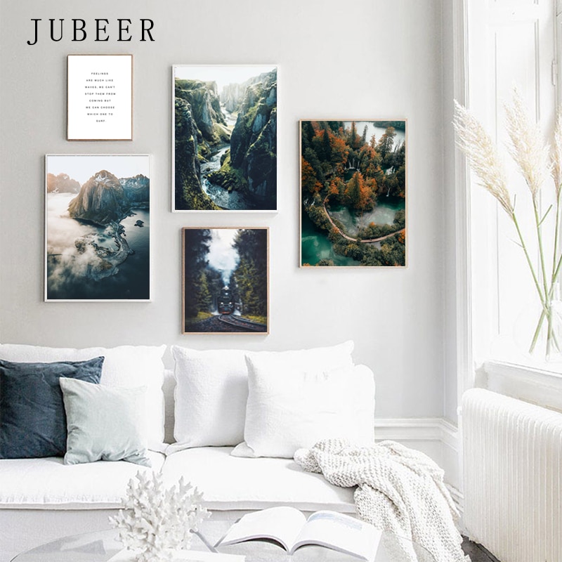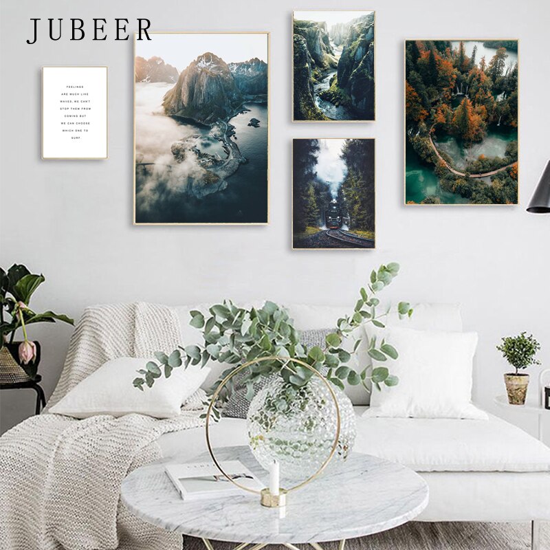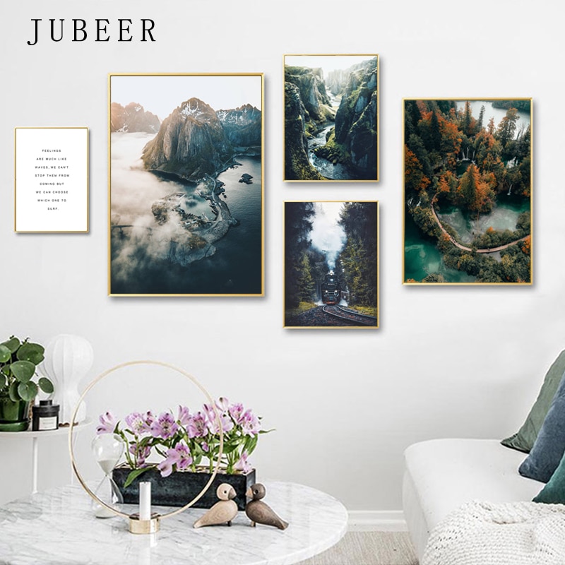 Nordic style landscape posters and prints forest mountain canvas print lake wall art decoration picture for living room painting