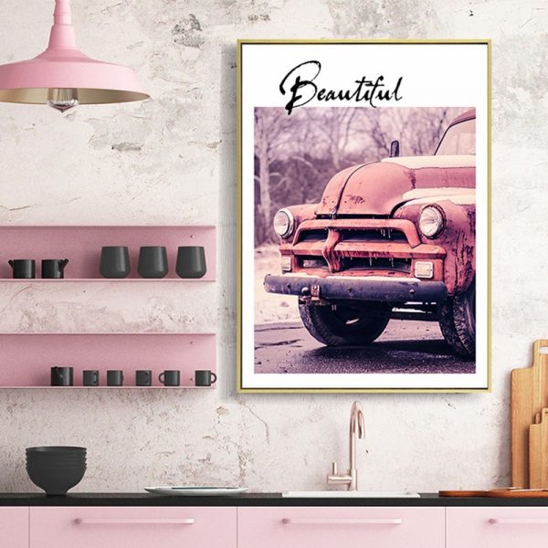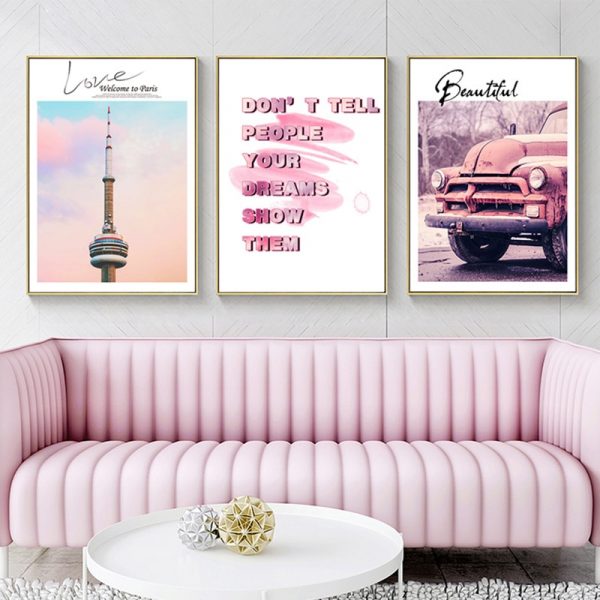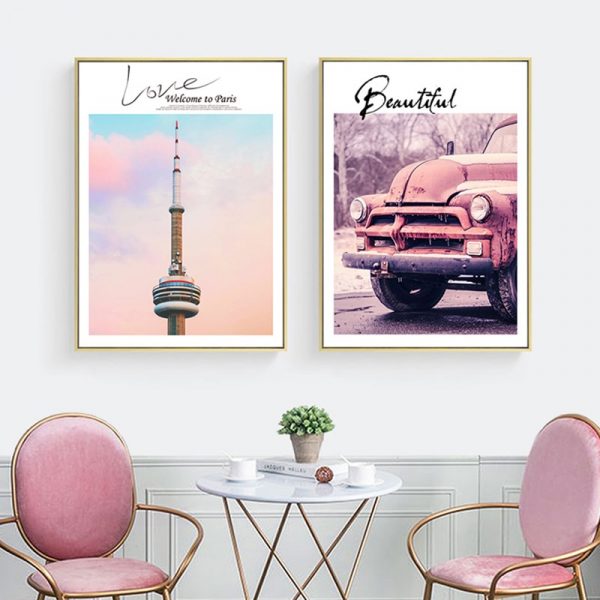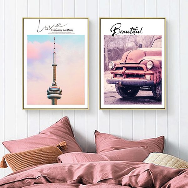 Be the first to review “Nordic style Pink Car Canvas Painting Paris Building Wall Art Posters and Prints Life Quotes Decorative Picture for Living Room”