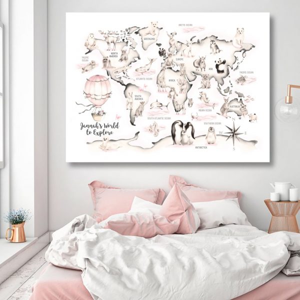 Be the first to review “Nursery Posters and Prints Art Cartoon Animals World Map Wall Pictures for Baby Room Office Home Decoration Baby Cnavs Painting”