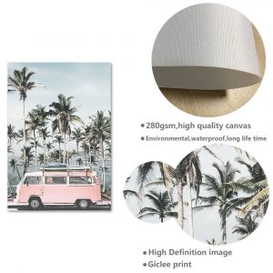10 reviews for Ocean Landscape Canvas Poster Nordic Style Beach Pink Bus Wall Art Print Painting Decoration Picture Scandinavian Home Decor