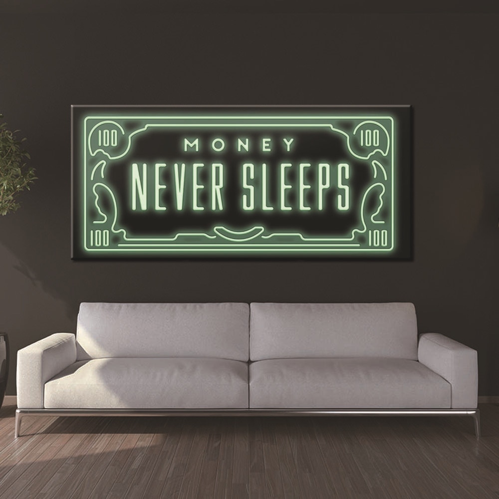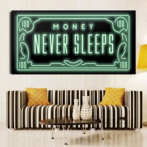 Office Hanging Painting Text “Money Never Sleeps” Inspirational Decorative Painting Wall Art Canvas Poster Kitchen Pictures