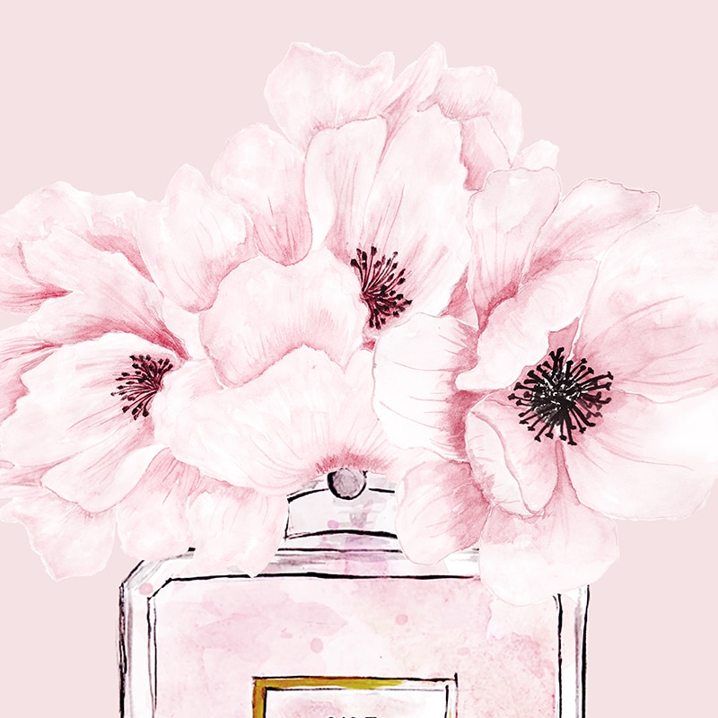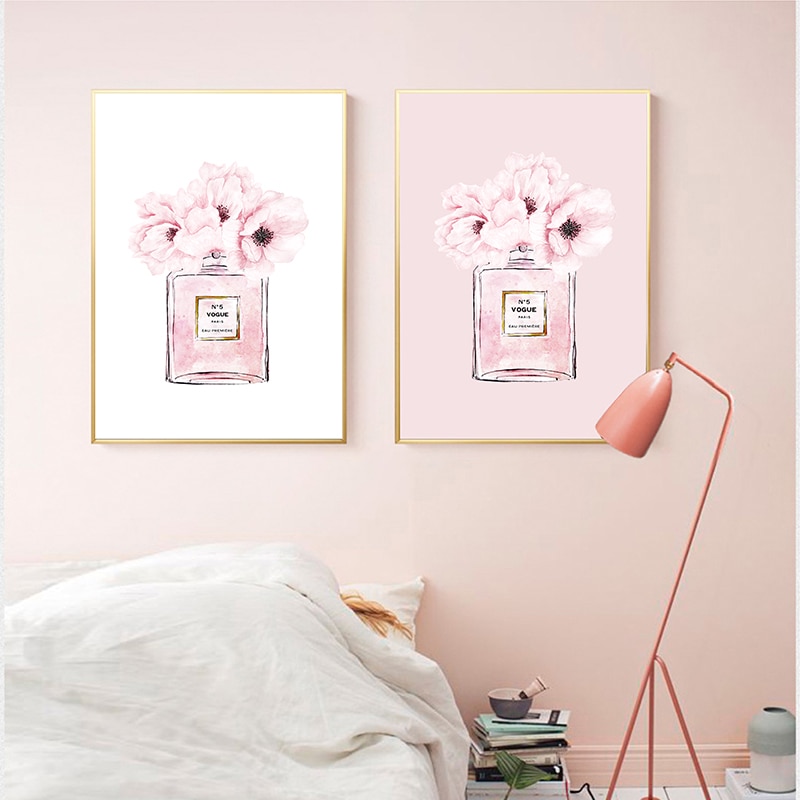 Perfume Fashion Canvas Art Prints and Poster Modern Watercolor Blush Pink Peonies Painting Wall Pictures Living Room Decor