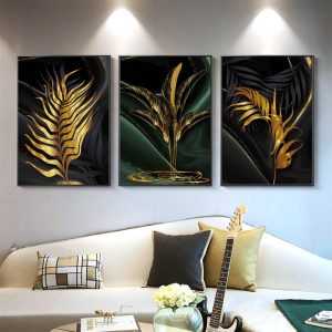 Be the first to review “Plant Leaves Posters And Prints Gold Wall Art Canvas Print Black Abstract Art Painting Nordic Wall Picture For Living Room Decor”