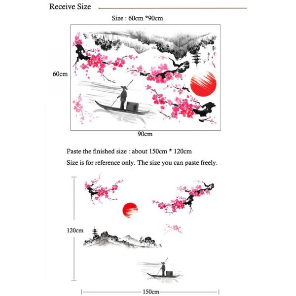 Be the first to review “Plum Sunrise landscape Chinese style art Wall Stickers Living room Bedroom background for home decoration Mural Decals wallpaper”