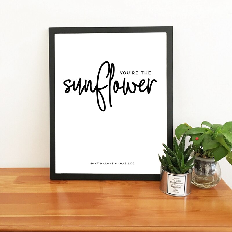 Post Malone and Swae Lee Sunflower Quote Poster Print Song Lyrics Music Gift ideas Canvas Painting Picture Home Wall Art Decor