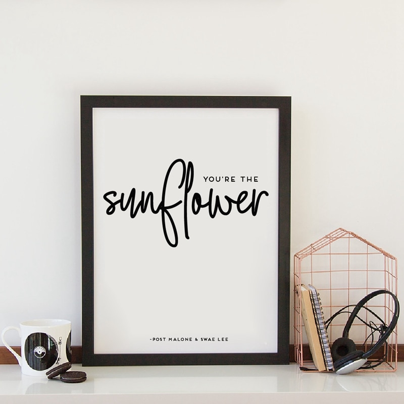 Be the first to review “Post Malone and Swae Lee Sunflower Quote Poster Print Song Lyrics Music Gift ideas Canvas Painting Picture Home Wall Art Decor”