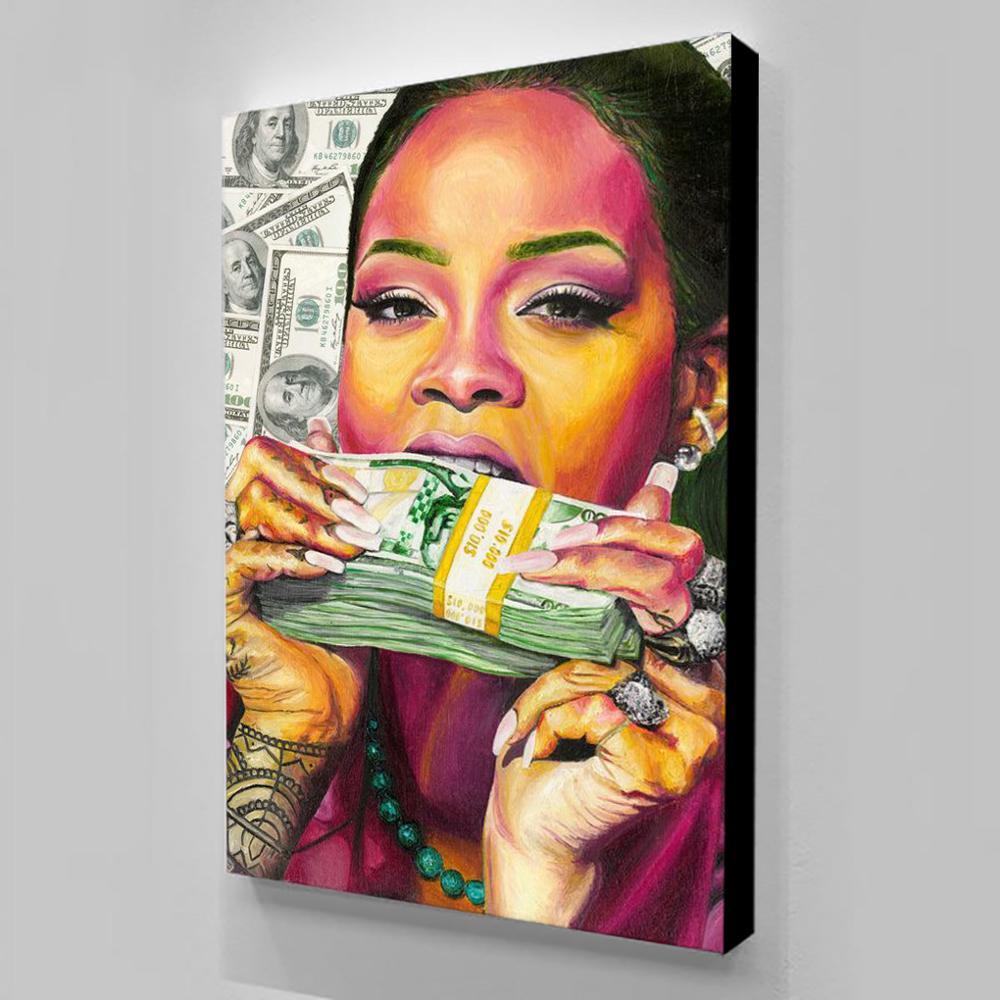 Poster Canvas Prints Woman With Dollar In Mouth Canvas Painting Room Decoration Cuadros Wall Art Decor Paintings Sexy Goddess