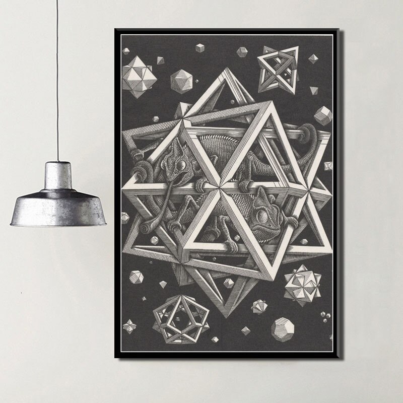 Poster Prints Hot Escher Surreal Geometric Artwork Modern Abstract Oil Painting Canvas Wall Art Pictures Living Room Home Decor