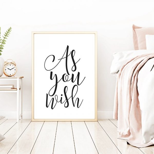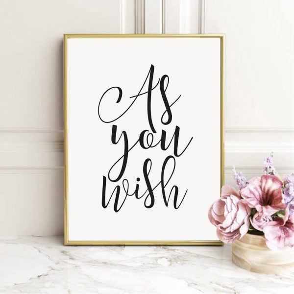 Princess Bride Print Poster As You Wish Inspirational Quote Prints Black White Love Wall Art Canvas Painting Girls Room Decor