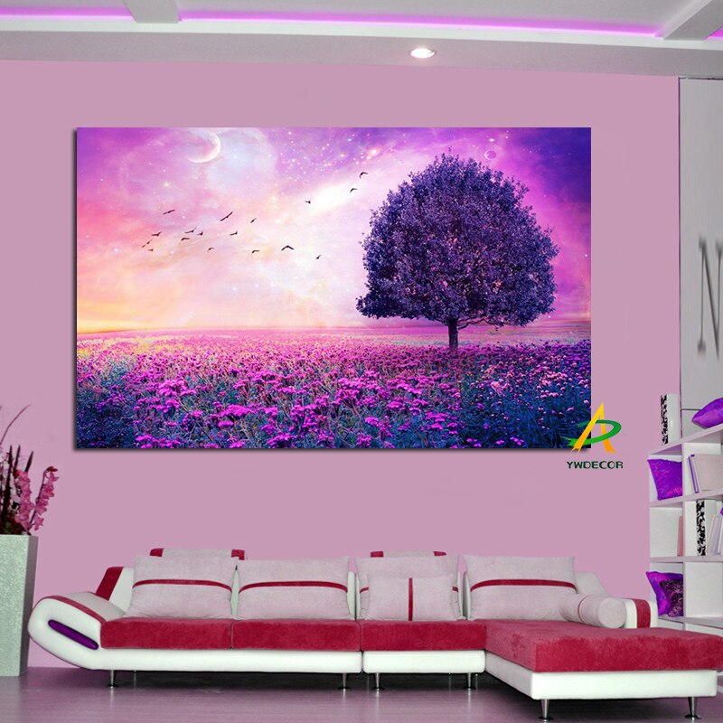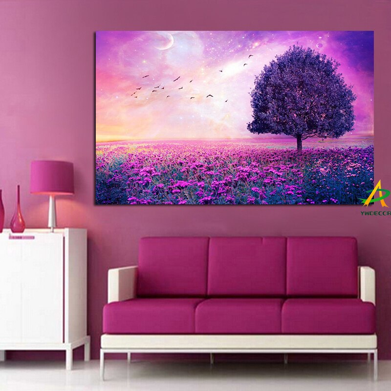 Purple Romantic Tree Birds Landscape Abstract Canvas Painting Nordic Poster Print Scandinavian Wall Picture Living Room No Frame