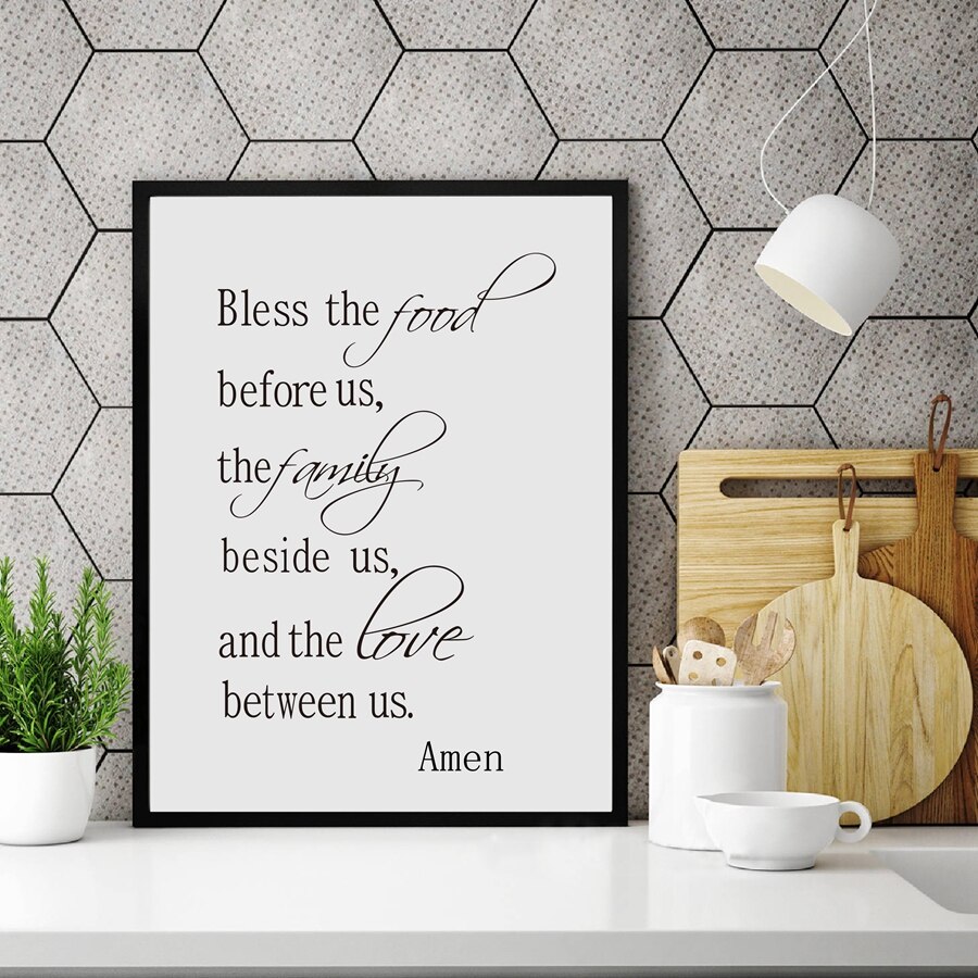 Religion Quote Canvas Art Print Poster , Bless the Food Family Love Religious Canvas Painting Poster Kitchen Wall Art Decor