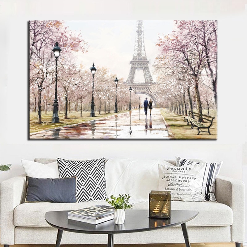 Romantic City Lovers Paris Eiffel Tower Landscape HD Print Abstract Oil Painting on Canvas Wall Art Living Room Sofa Home Decor