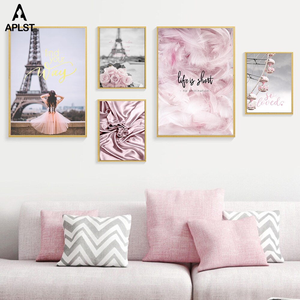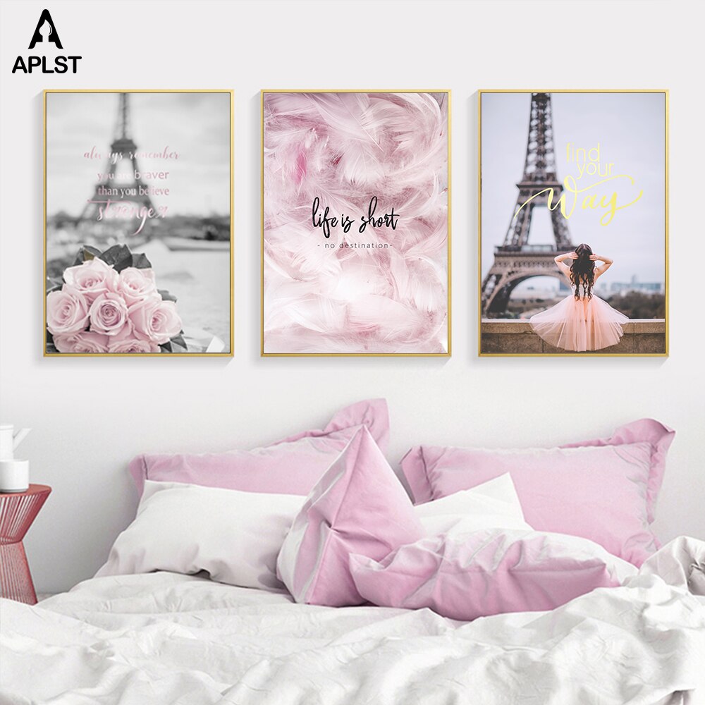 Be the first to review “Romantic France Paris Pink Flower Feather Canvas Posters and Prints Girl Scandinavian Love Wall Art Painting Decorative Pictures”