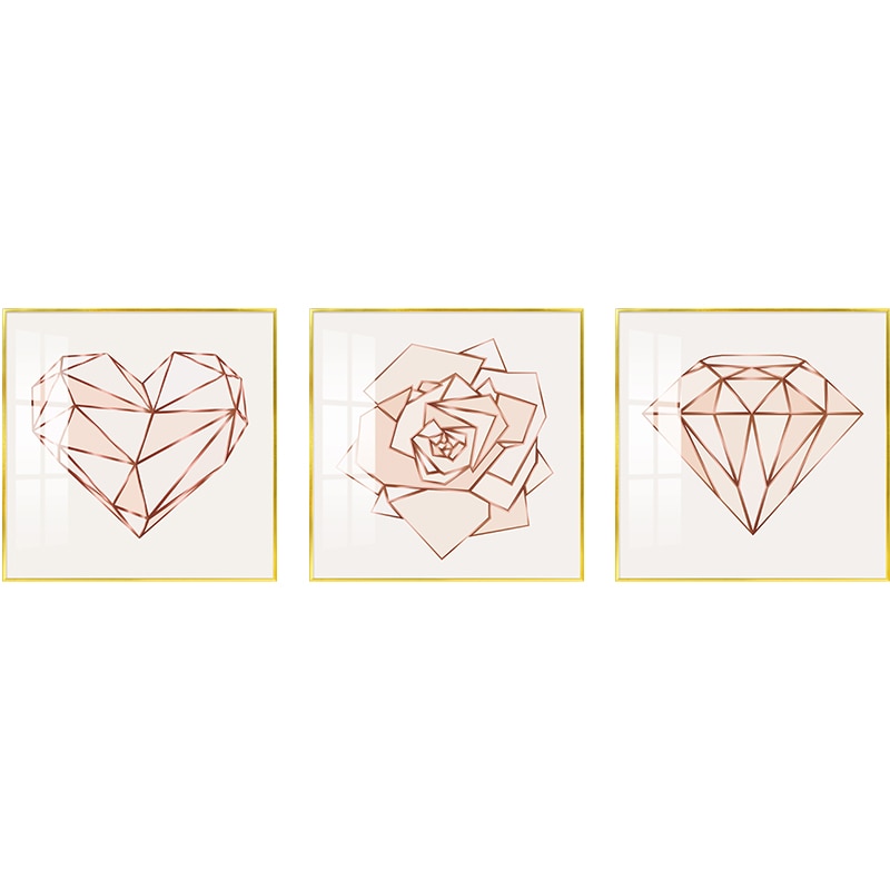 Rose Gold Paintings Girls Bedroom Wall Art Pink Geometric Heart Poster Abstract Flower Canvas Painting Modern Home Decor Prints