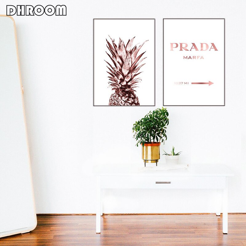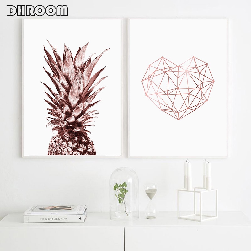 Rose Gold Wall Art Tropical Pineapple Posters and Prints Geometric Heart Canvas Painting Scandinavian Luxury Pictures Home Decor