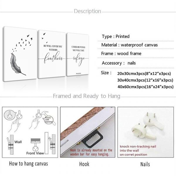 Be the first to review “Scripture Bible Quote Letter Framed Wall Art Living Room Home Poster Canvas Painting Will Cover You With His Decoration Picture”