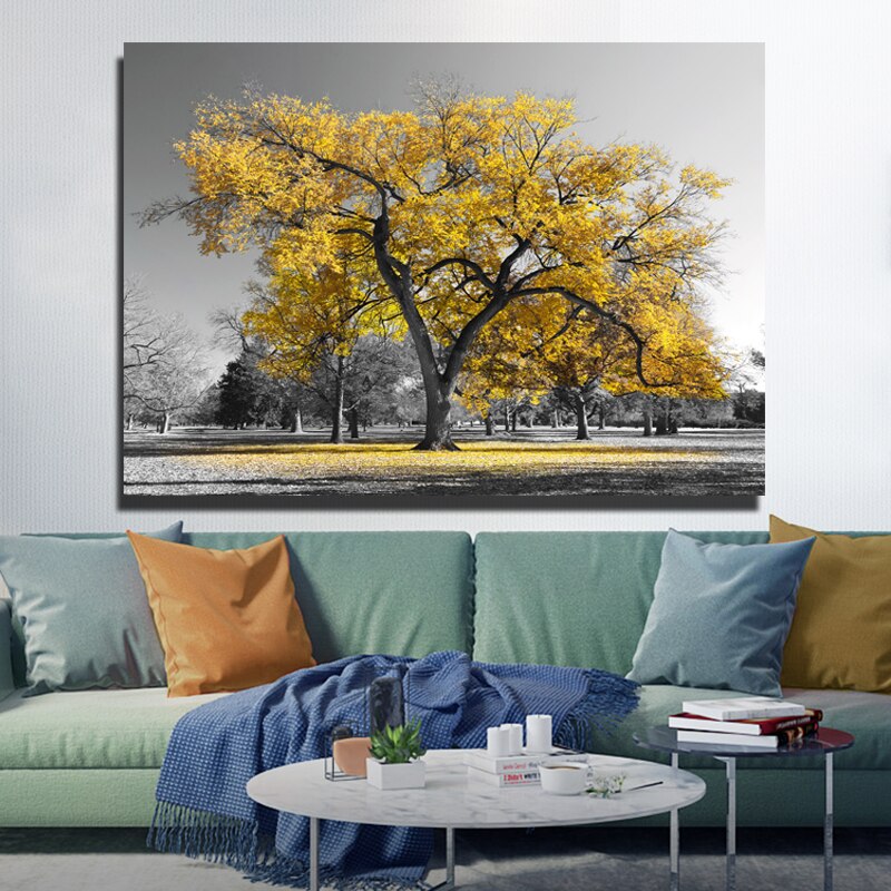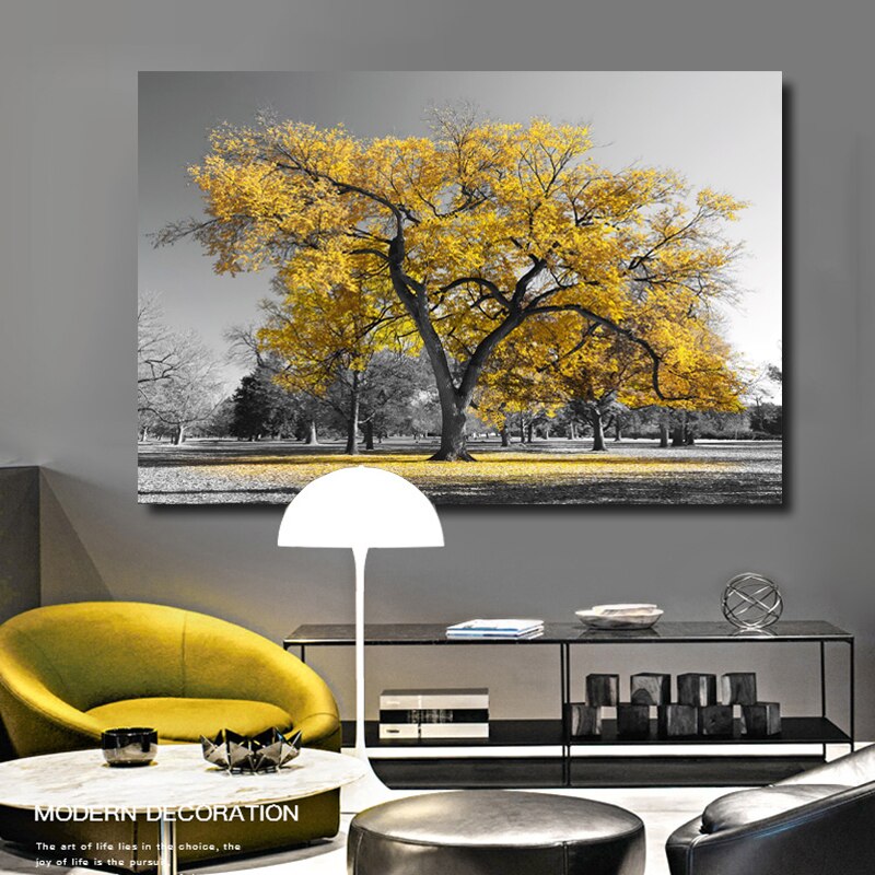 SELFLESSLY Yellow Tree Black And White Pictures Modern Landscape Painting For Living Room Decoration Canvas Posters And Prints