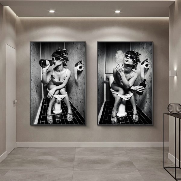 10 reviews for Sexy Girl Sits in a Toilet Nordic Canvas Art Posters And Prints Black And White Canvas Paintings On the Wall Art Pictures Cuadro