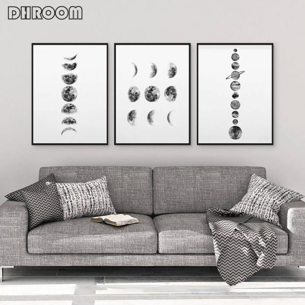 10 reviews for Solar System Wall Art Black and White Moon Phases Canvas Art Prints Minimalist Space Poster Painting for Living Room Home Decor