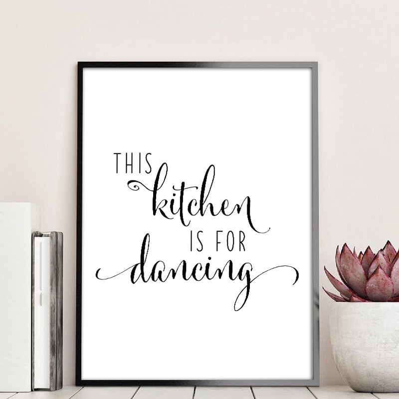 This Kitchen is for Dancing Quotes Canvas Painting Black and White Wall Art Poster Print Pictures For Kitchen Home Decor CH108