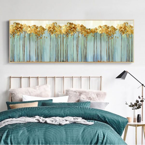 Turquoise Posters and Prints Wall Art Canvas Painting Abstract Golden Trees Wall Art Pictures for Living Room Cuadros Decor
