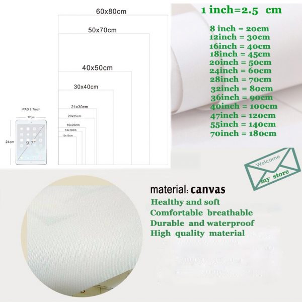 | Size (Inch) | 20x60cm No Frame, 30x90cm No Frame, 40x120cm No Frame, 50x150cm No Frame, 60x180cm No Frame |