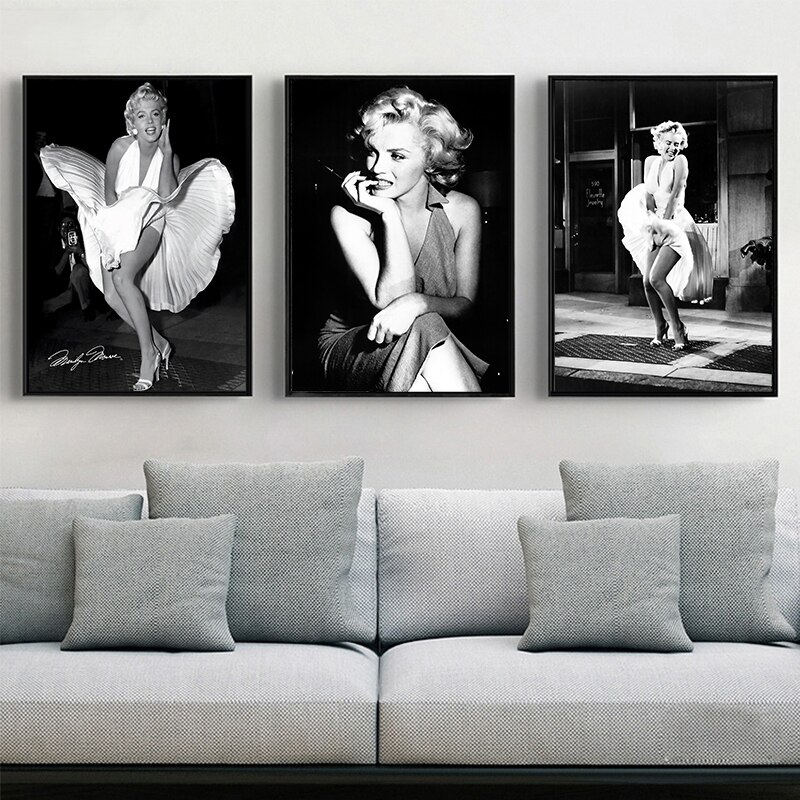 Vintage Posters and Prints Famous Marilyn Monroe Black and White Photo Canvas Painting Cuadros Wall Art Picture for Home Decor