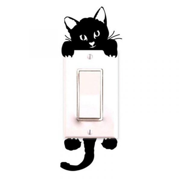 Wall Stickers Cute Black Cat Shape Baby Nursery Room Living Room PVC Durable Removable Waterproof Light Switch Decor Art Decals