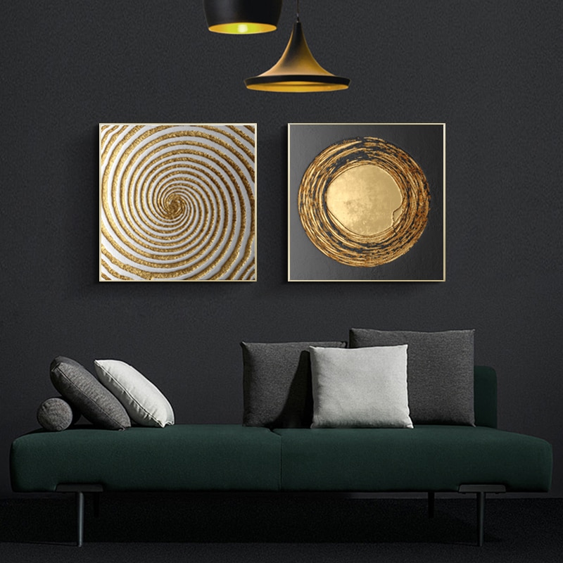 Poster Print abstract gold black modern square Canvas Painting Art Picture Wall Art Home Decor