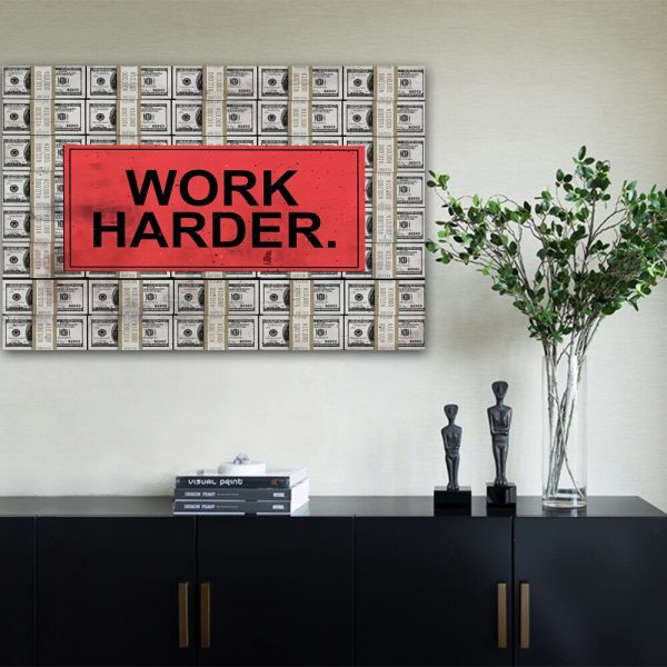 WANGART Quote Work Harder Money Oil Painting Dollar Poster Canvas Wall Pictures for Living Room Posters and Prints Home Decor