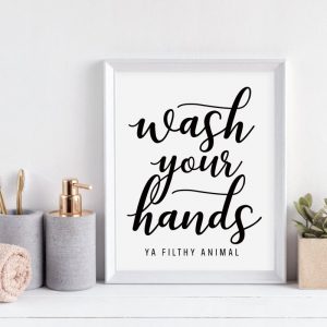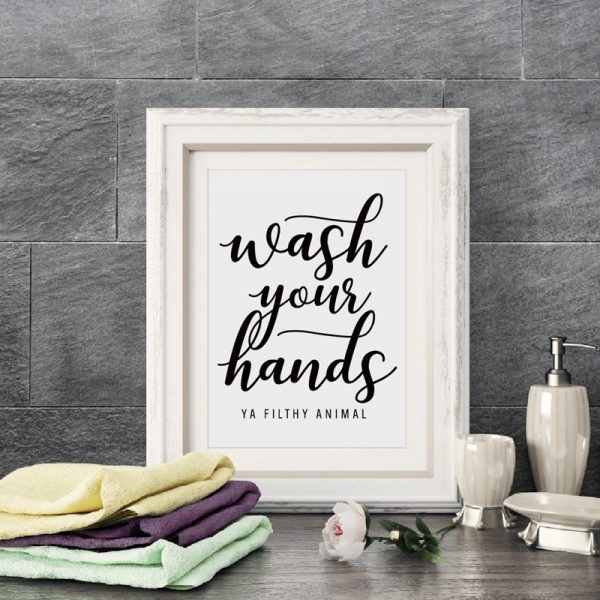 Be the first to review “Wash Your Hands You Filthy Animal Wall Art Canvas Poster Print Funny Bathroom Quotes Art Painting Black Typography Home Decor”