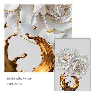 Be the first to review “White Rose Flower Golden Ink Splash Abstract Poster Nordic Art Plant Canvas Painting Modern Wall Picture for Living Room Decor”