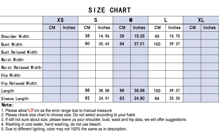 | Sleeve Length(cm) | Full |