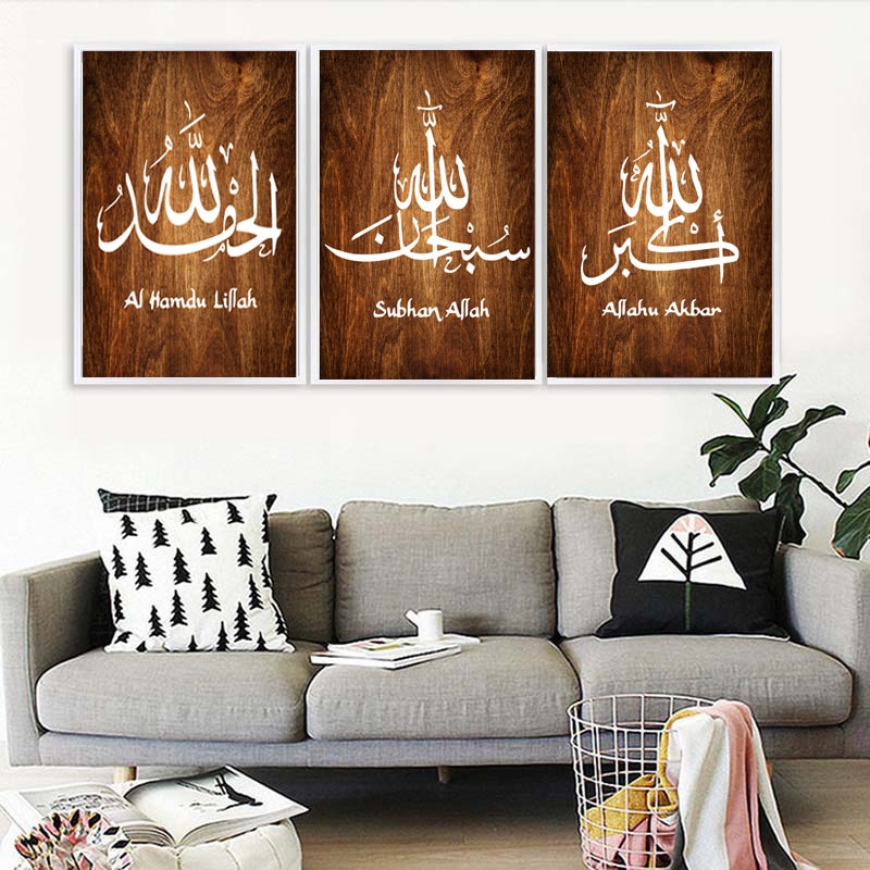 Wooden Design Islamic Wall Poster Muslim Arabic Islam God Allah Quran Canvas Painiting Pictures for Home Decor/S1