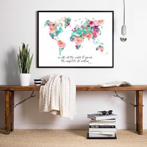 Be the first to review “World Map Print Mark 16:15 Bible Verse Watercolor Floral Art Canvas Painting Scripture Christian Poster Home Wall Art Decor”
