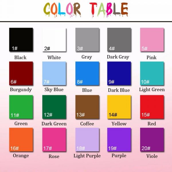 | Color | Black, Blue, Gold, Gray, Green, Pink, Purple, Red, White, Yellow, Coffee, Light Grey, Sky Blue |