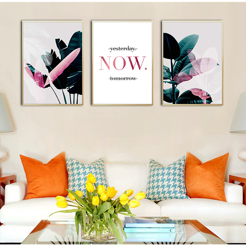 Yumeart Nordic Canvas Painting Modern Prints Pink Plant Leaf Art Posters Prints Green Art Wall Pictures Living Room Decoration